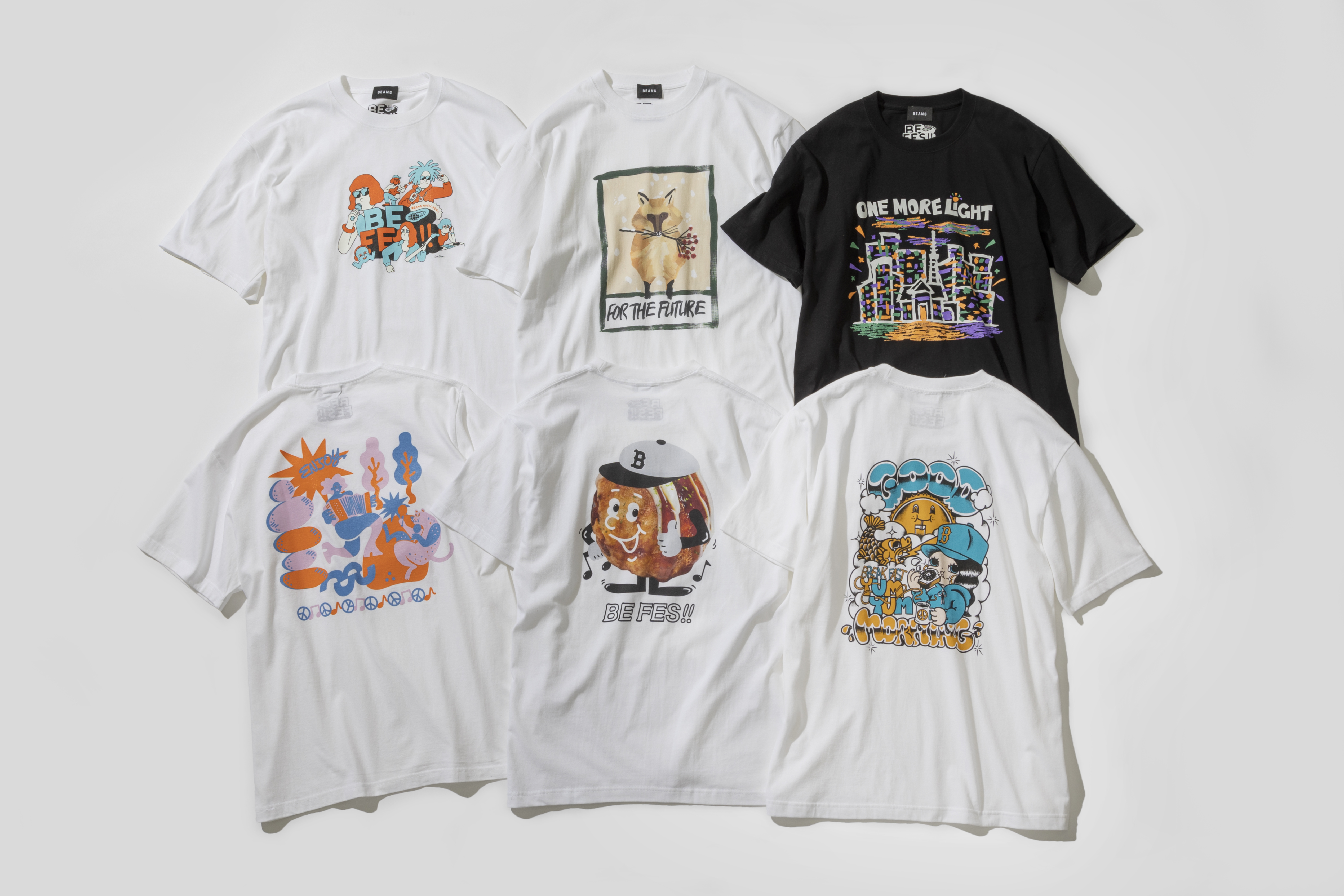 本フェスティバルを盛り上げるべく『BE FES!!』のロゴを配したTシャツとビームススタッフのアイディアを踏襲し、各エリアに所縁のあるアーティストがデザインしたTシャツ計6型の先行予約を12月3日(金)より開始致します。