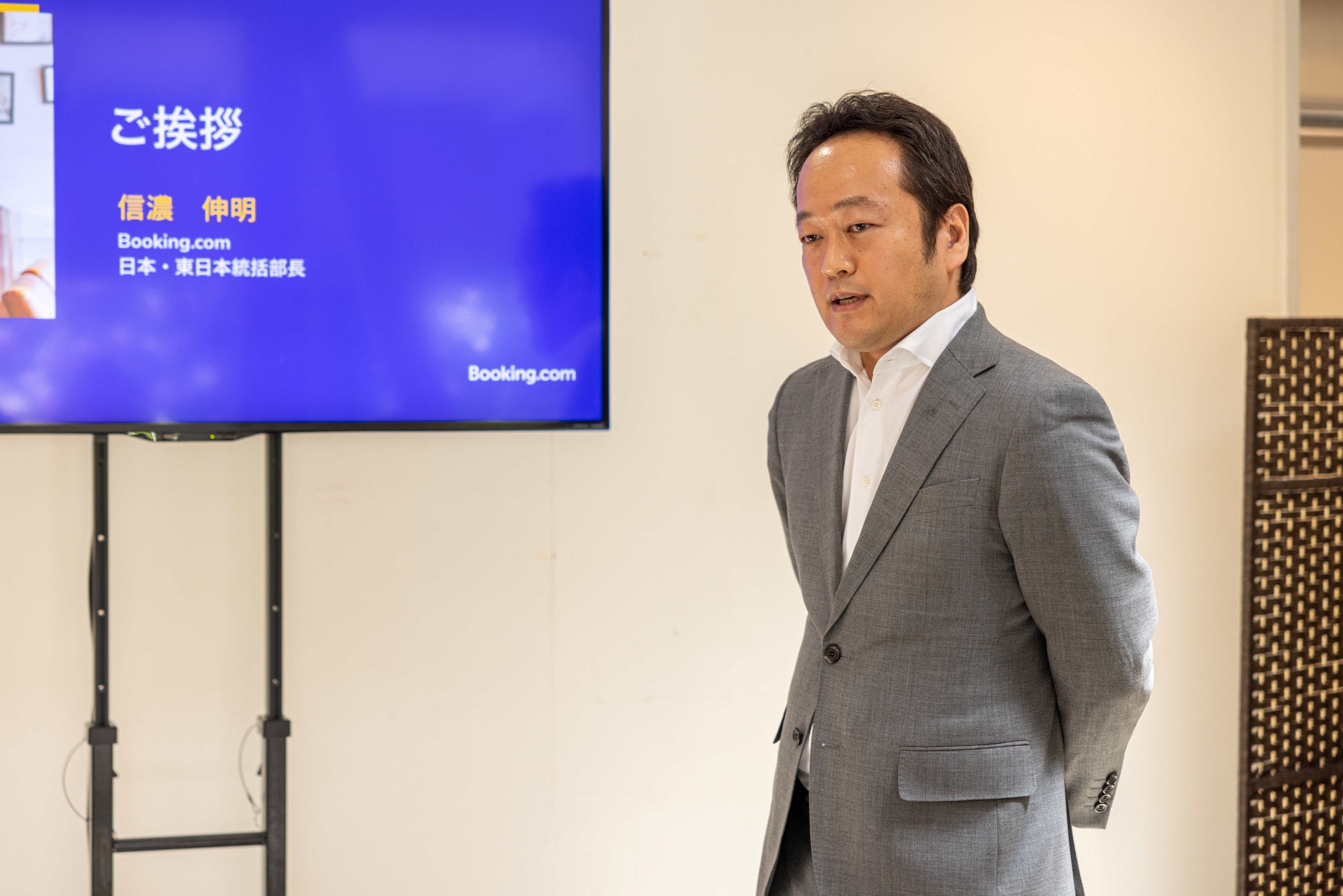 冒頭では、ブッキング・ドットコム 日本・東日本統括部長 信濃 伸明が、2025年GW旅行トレンド予測について発表しました。