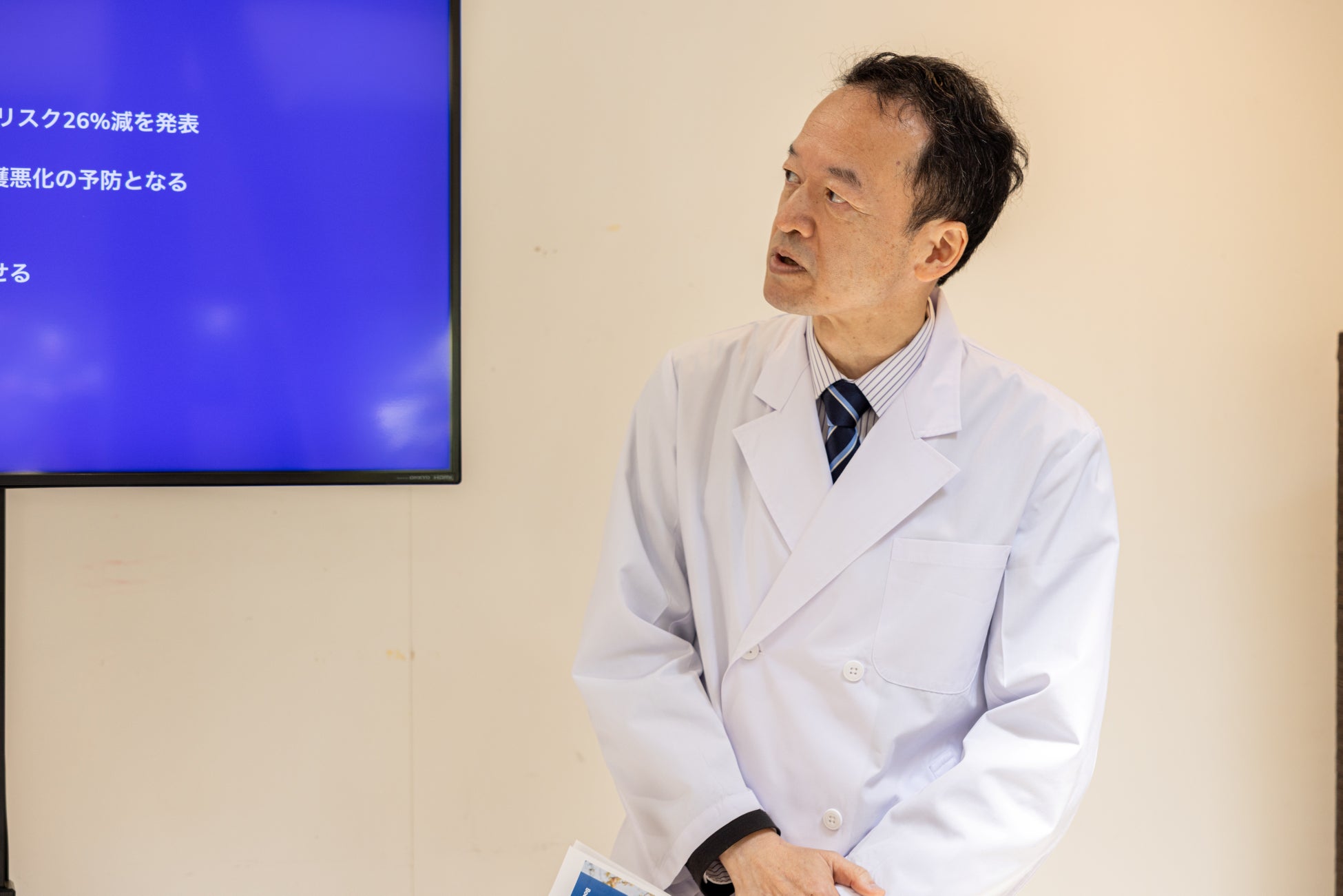 温泉医学の第一人者であり医学博士の早坂 信哉先生は、25年以上にわたる研究で4万人以上の入浴を調査し、高齢者の入浴事故調査から研究を開始しました。また、入浴事故だけでなく温泉や入浴の健康効果を数値化をする調査もしています。早坂先生は、「毎日湯船に浸かる人は、要介護状態になるリスクが29%減、うつ病リスクが24%減、さらに認知症の発症リスクも26%減少するというデータが出ています」と説明しました。