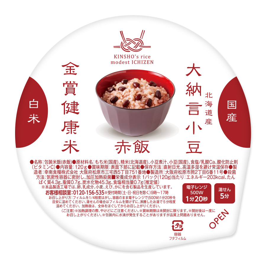 配合比:国産もち米57.1%、金賞健康米30.8%、北海道産大納言小豆12.1%