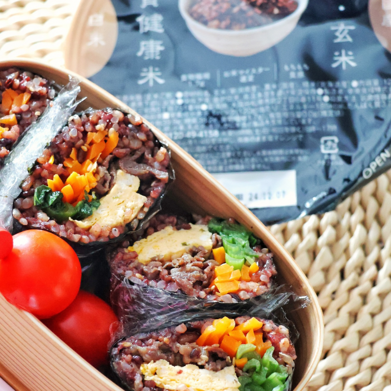 抗酸化作用があるとされるアントシアニンを豊富に含む黒米がたっぷりブレンドされており、炊きあがりはお赤飯のような外観です。