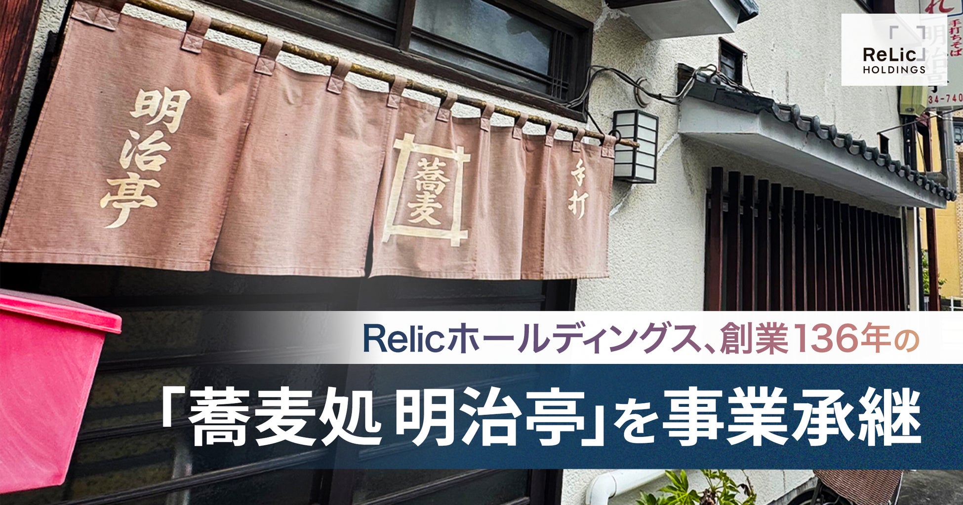 Relicホールディングス、創業136年の老舗蕎麦店「蕎麦処 明治亭」を事業承継