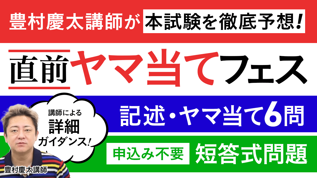 毎年行政書士試験の問題を的中させてきた豊村講師が,長年の経験を活かしてヤマ当てを行います。
