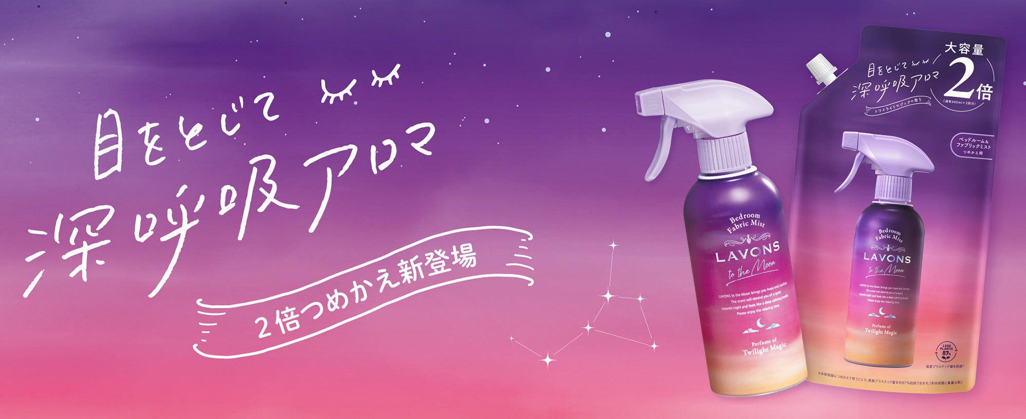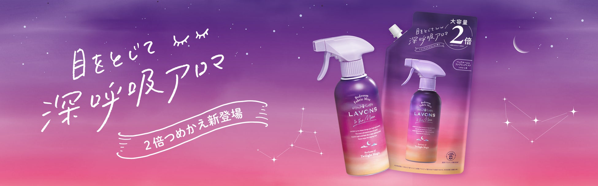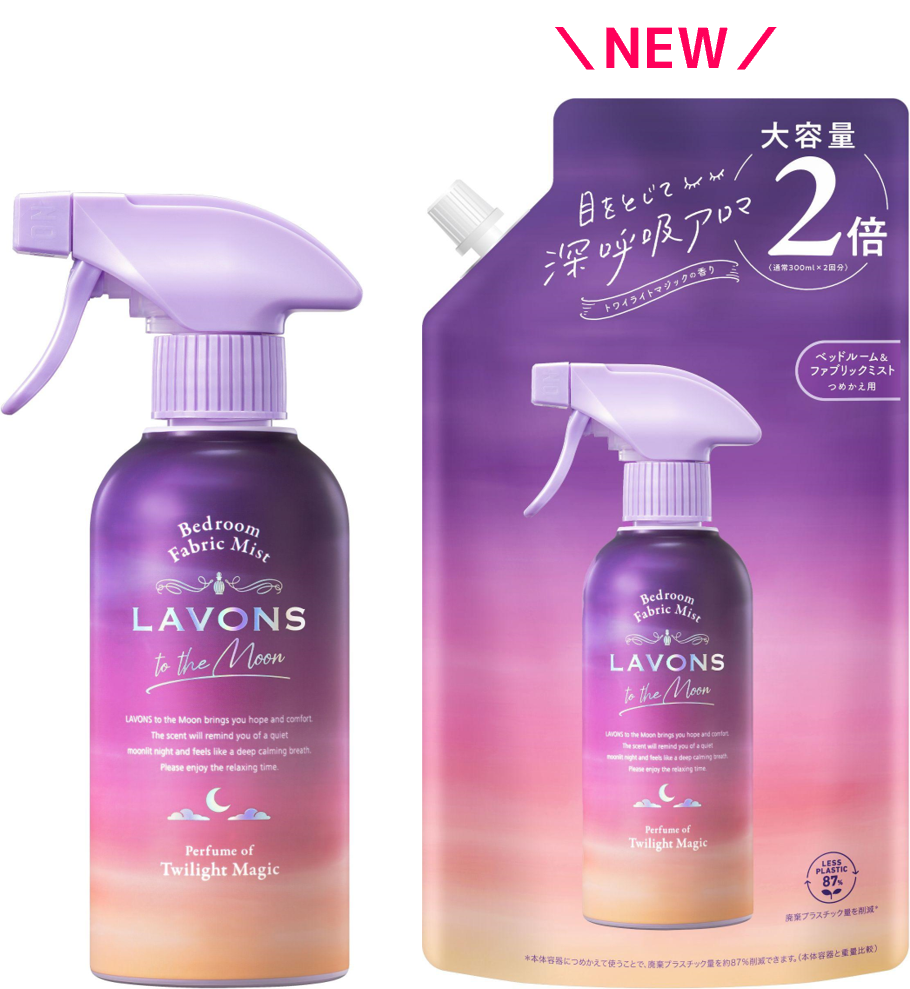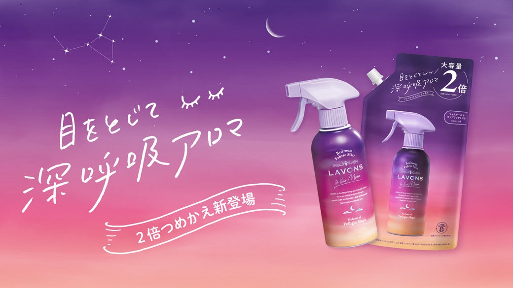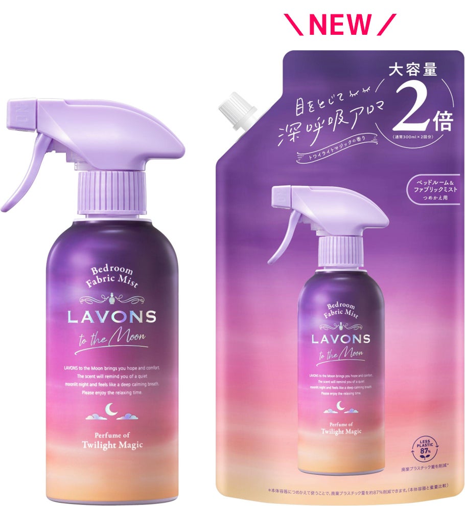 毎晩のリラックスタイムをもっと心穏やかに ラボン深呼吸アロマシリーズ『 LAVONS to the Moon』にベッドルーム&ファブリックミストの詰替2倍サイズが登場