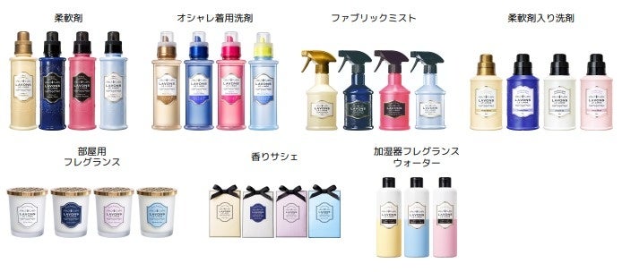2013年9月の発売以降、柔軟剤、洗剤、ファブリックミスト、芳香剤を展開しており、 お気に入りの香りを様々なシーンで楽しむことができます。
