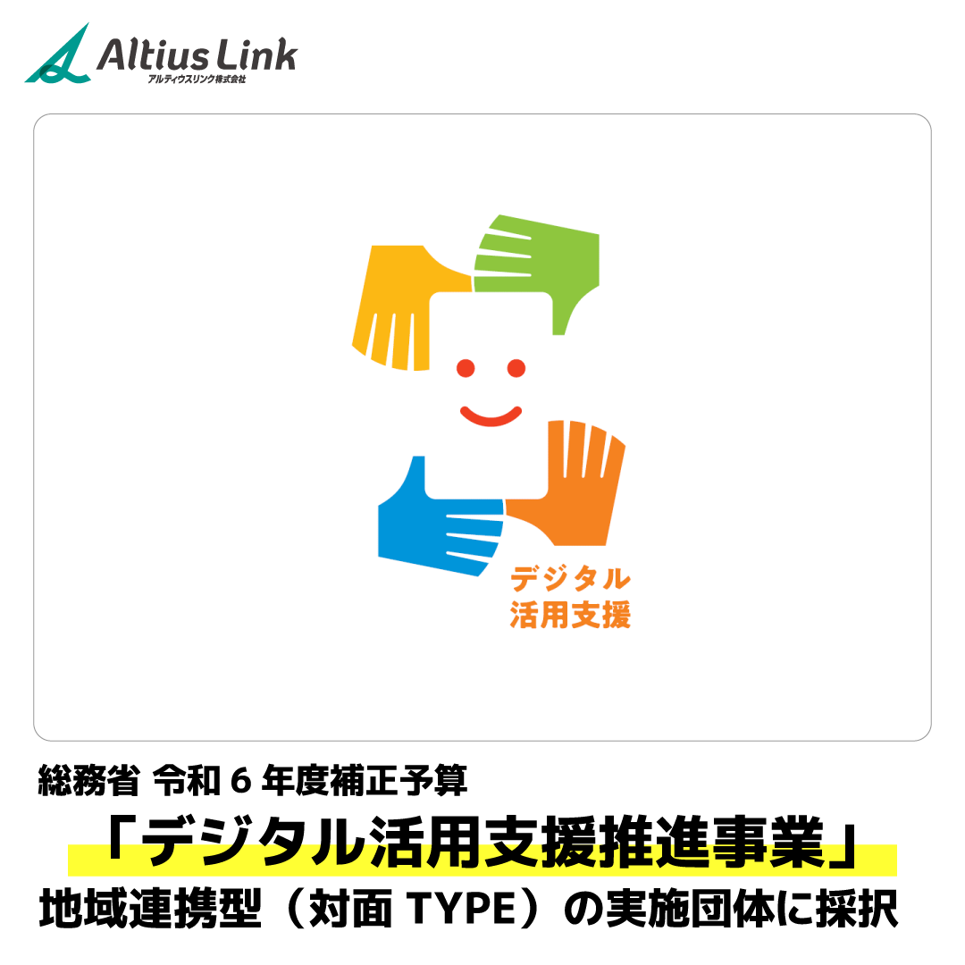 アルティウスリンク株式会社(所在地:東京都渋谷区、代表取締役社長:若槻 肇、以下 アルティウスリンク)は、総務省が推進する令和6年度補正予算「デジタル活用支援推進事業」の事業実施団体(地域連携型・対面TYPE)として採択されました。