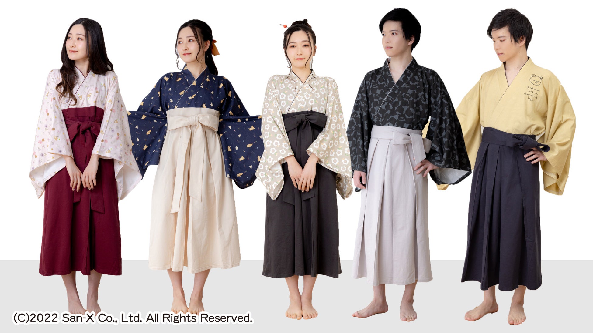 シリーズ第9弾の「ゆる袴」は、リラックマのイラストをあしらった新デザイン。レディースに「ウィズハピネス」と「お花とコリラックマと一緒」「テキスタイルフラワー」を各3サイズ、メンズは、「シンプルシルエット」と「手書きリラックマ」の各2サイズで展開します。花柄や落ち着いた色合いの中にさりげないリラックマの遊び心が効いた綿100%のルームウェアです。