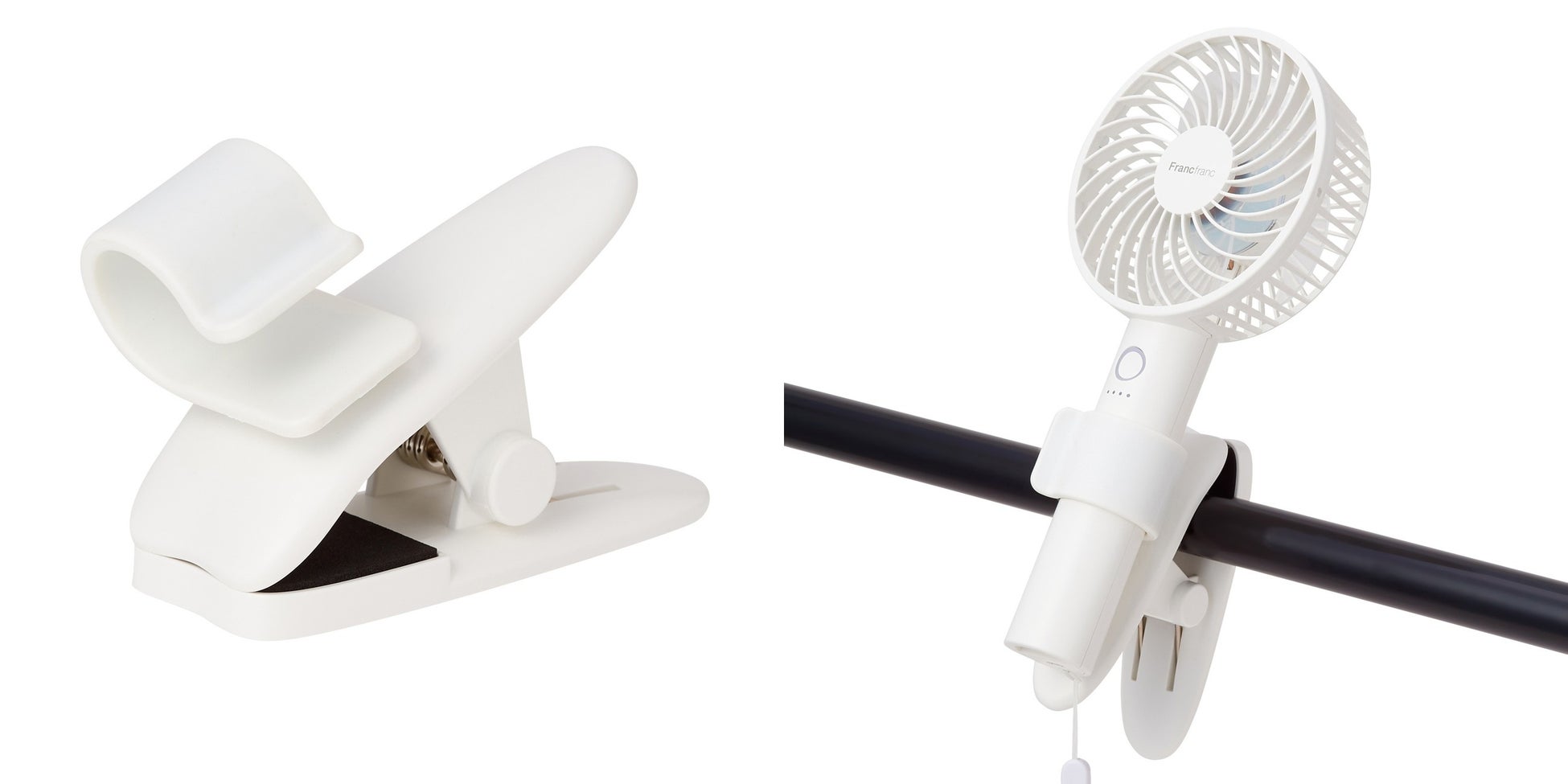 フレ ハンディファン専用のクリップです。デスクやベビーカーのハンドルなどお好きな場所に取り付けて、ハンディファンの風をハンズフリーで楽しめます。