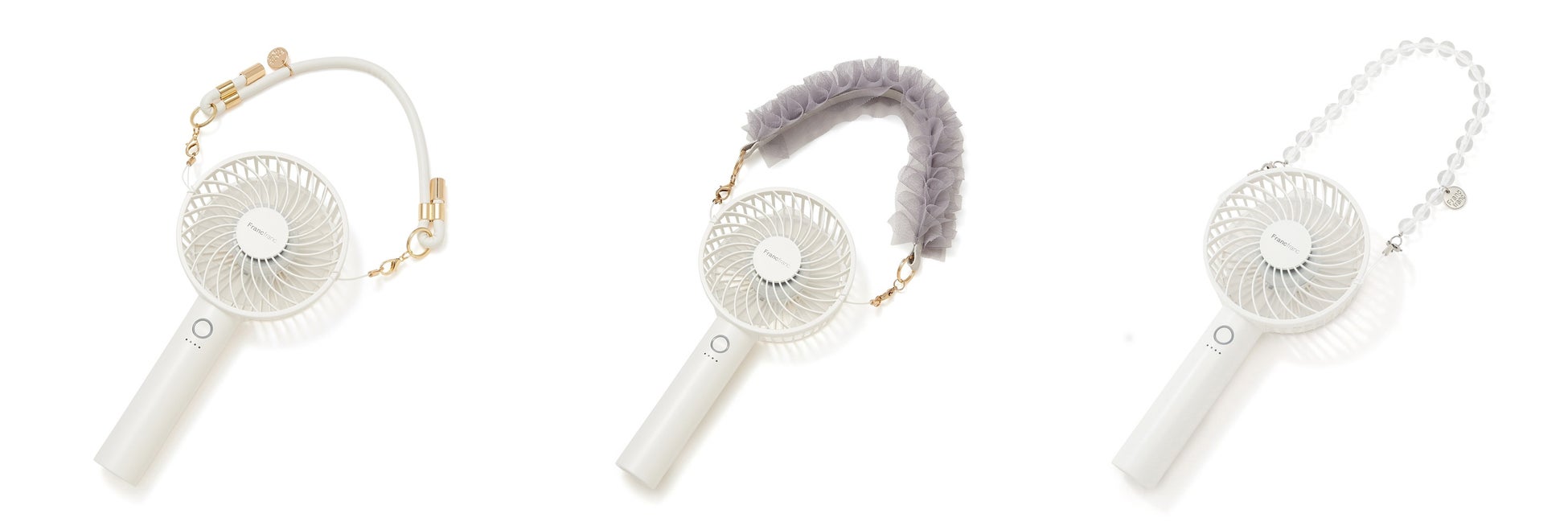定番モデルの「フレ ハンディファン」は累計販売数440万台を突破し、今年はメタリックやクリアカラーの輝きと持ち手のニュアンスデザインが調和したトレンド感溢れるウェーブデザインや、ポップなビタミンカラーをベースに羽をバイカラーで仕上げた遊び心たっぷりのデザイン、シアーなミルキーカラーにマーブル模様が涼しげなデザインなど6種類の新デザインを追加した全10種類をラインアップ。「フレ ハンディファン」と一緒にコーディネートを楽しめるネックストラップも、トレンドのパールやビーズデザインなど、これまで以上にハンディファンをファッショナブルに楽しめるアイテムが登場します。