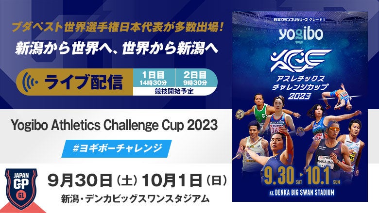 2023年9月30日(土)10月1日(日) に開催する日本グランプリシリーズ グレード1 「Yogibo Athletics Challenge Cup 2023」を日本陸連公式YouTubeにてライブ配信することが決定しました!