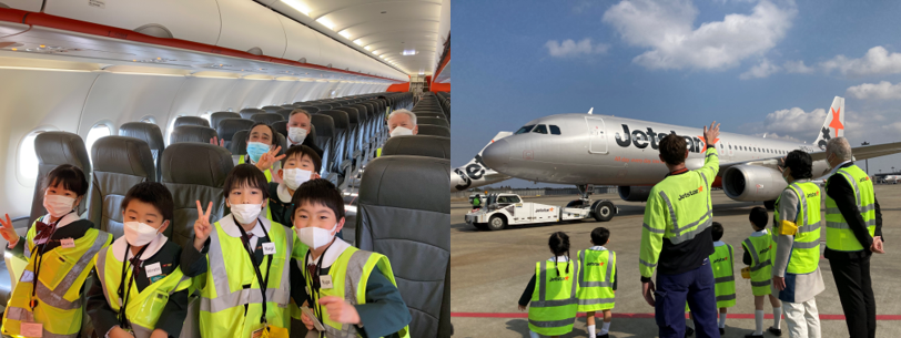 - ジェットスター・ジャパン協力のもと、機内で英語でのアナウンス体験や外国人パイロットに英語でインタビュー