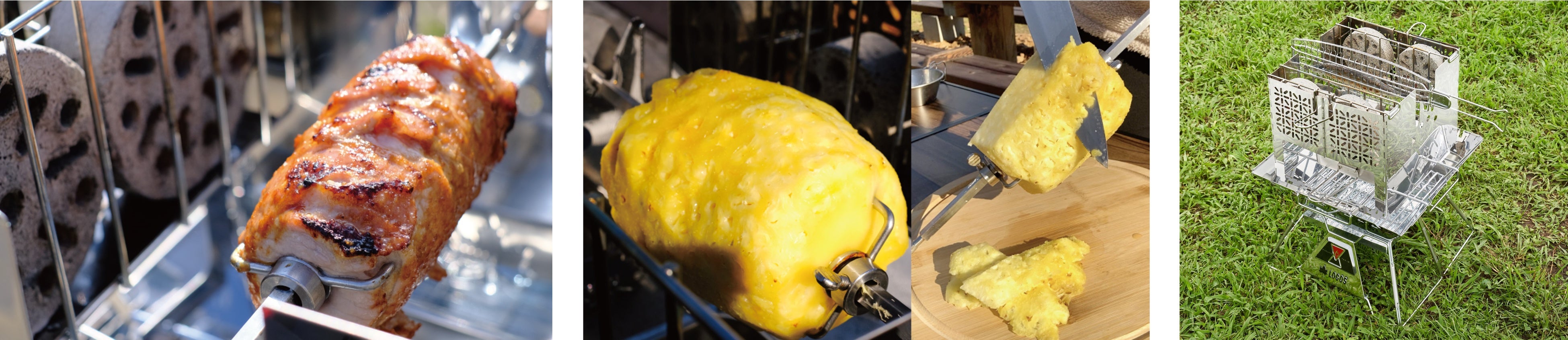 ~キャンプで簡単バウムクーヘンづくり!自動で回転するクッキングリル~