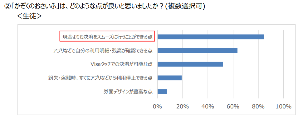 その他にも、生徒からは「タッチ決済が使えて嬉しかった」「非常に使いやすかった」、保護者からは「子どもに持たせることができて安心」「海外にいても利用通知がすぐに来て送金できることは安心」、滝川第二高校からは「世の中のキャッシュレス化が進む中で、生徒自身が家族と共にお金の扱いをキャッシュレス化することで、生徒のお金の勉強に繋がると感じる。将来的には学内の金銭のやり取りもキャッシュレス化の検討をしたい」などのお声をいただきました。