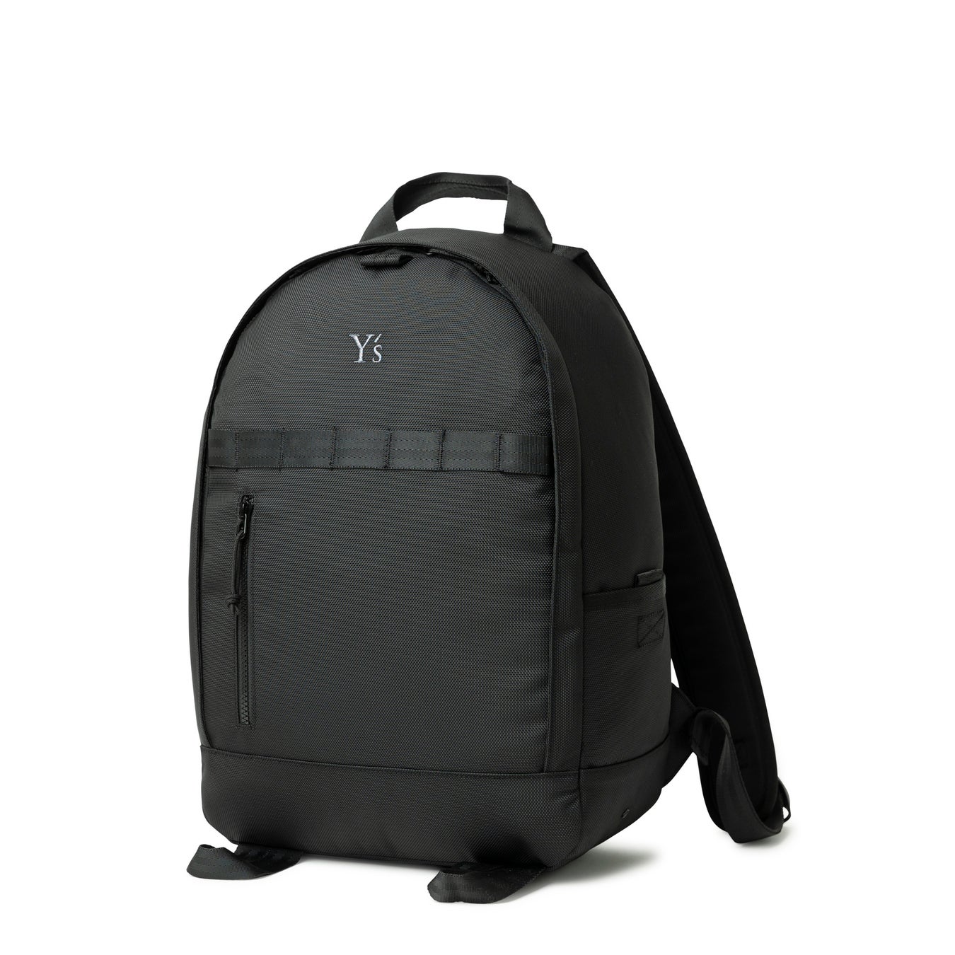 シンプルにフロントに「Y's」ロゴがメタリックブラックの刺繍でレイアウトされた、丸みを帯びた独特のシルエットが特徴の小型バックパック[Daypack]。外側のモーリーシステムは、カラビナをかけるなど多目的に使用することが可能。