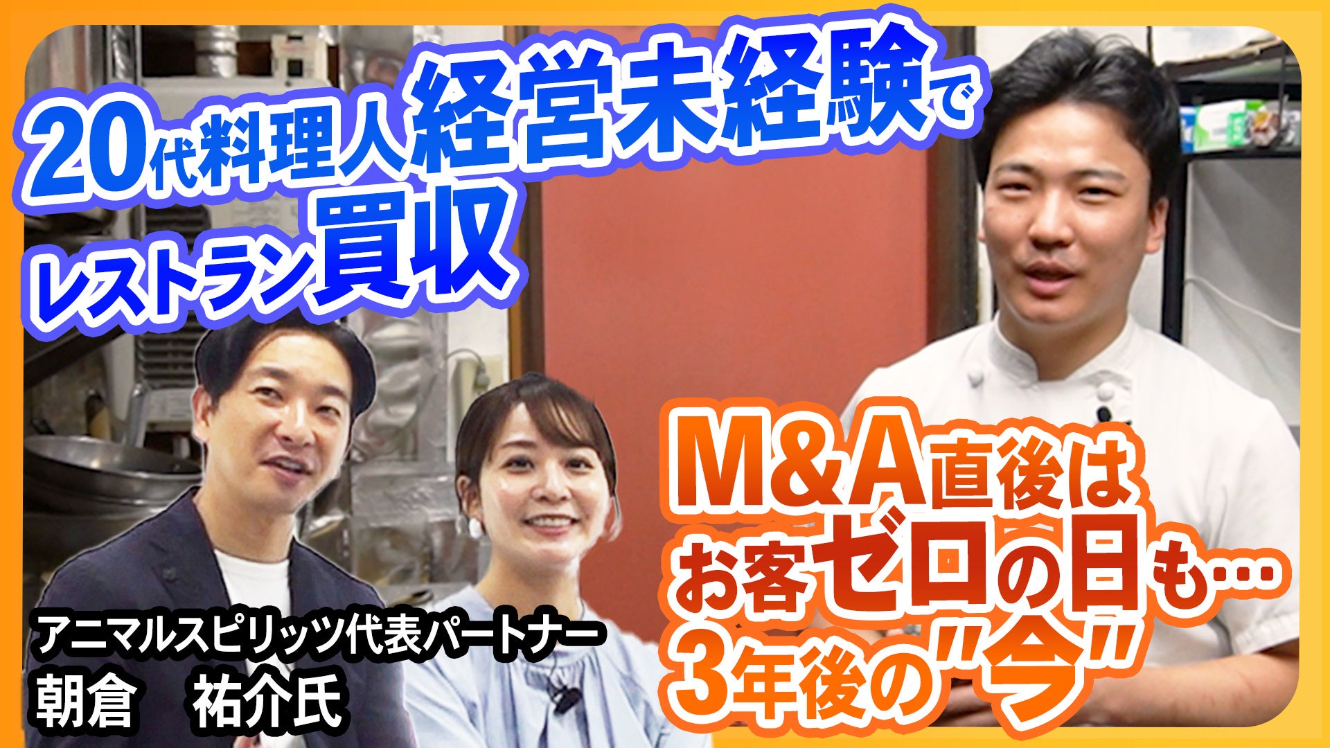 ・内容:20代で東京都内の老舗イタリアンを承継した若手シェフのその後に迫ります。「いつかは自分のお店を持ちたい」と思っていたシェフがコロナ禍をきっかけに起業を決意。M&Aに至るまでの経緯や店舗運営の苦労、事業を安定させ人気店へと成功させたリアルなストーリーです。