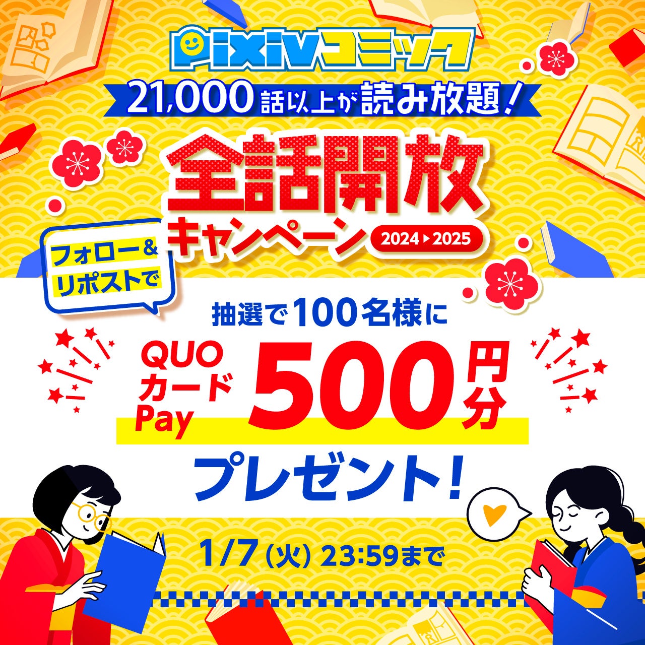 期間中、pixivコミック公式X(旧Twitter)アカウント(https://x.com/pixivcomic )をフォローし、対象ポストをリポストした方の中から抽選で100名様にQUOカードPay500円分をプレゼントいたします。