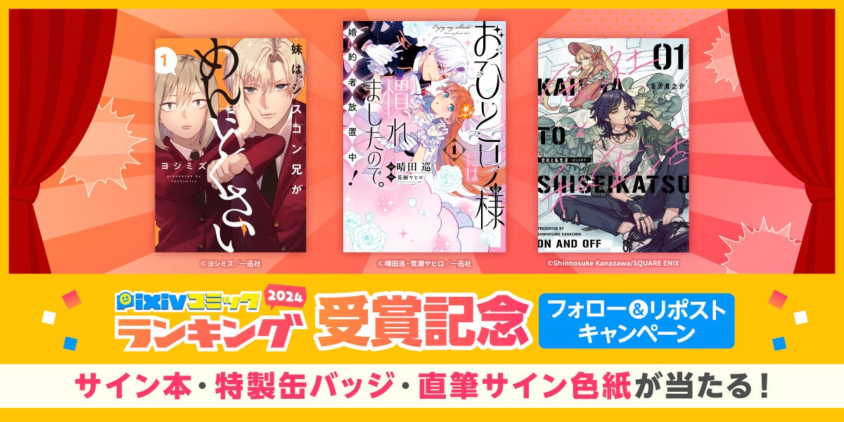 また、2024年12月20日(金)からは、全国書店約1,000店舗において”pixivコミックランキングフェア”を実施予定です。フェア期間中は、各店舗にランキング結果を発表するポスターや「pixivコミックランキング2024」受賞作品POPを展開予定です。今年大注目の作品を、ぜひチェックしてみてください。