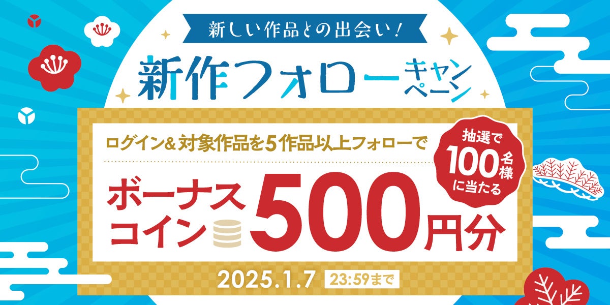 期間中、pixivアカウントにログインし、対象作品を5作品以上フォローした方の中から抽選で100名様に、pixivコミックストアで使えるボーナスコイン500円分をプレゼントいたします。