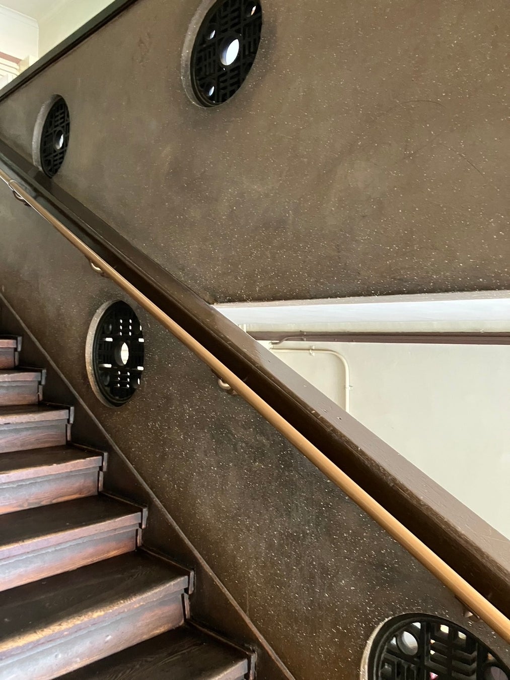 ・階段沿いのモチーフ(※統合前の住所である「神戸市生田区」の「生」の字がモチーフ)