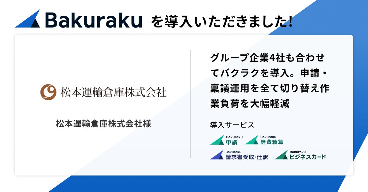 この度、創業117年の松本運輸倉庫が、グループ企業4社も合わせたグループ全体で「バクラク申請」「バクラク経費精算」「バクラク請求書受取・仕訳」「バクラクビジネスカード」を導入しました。