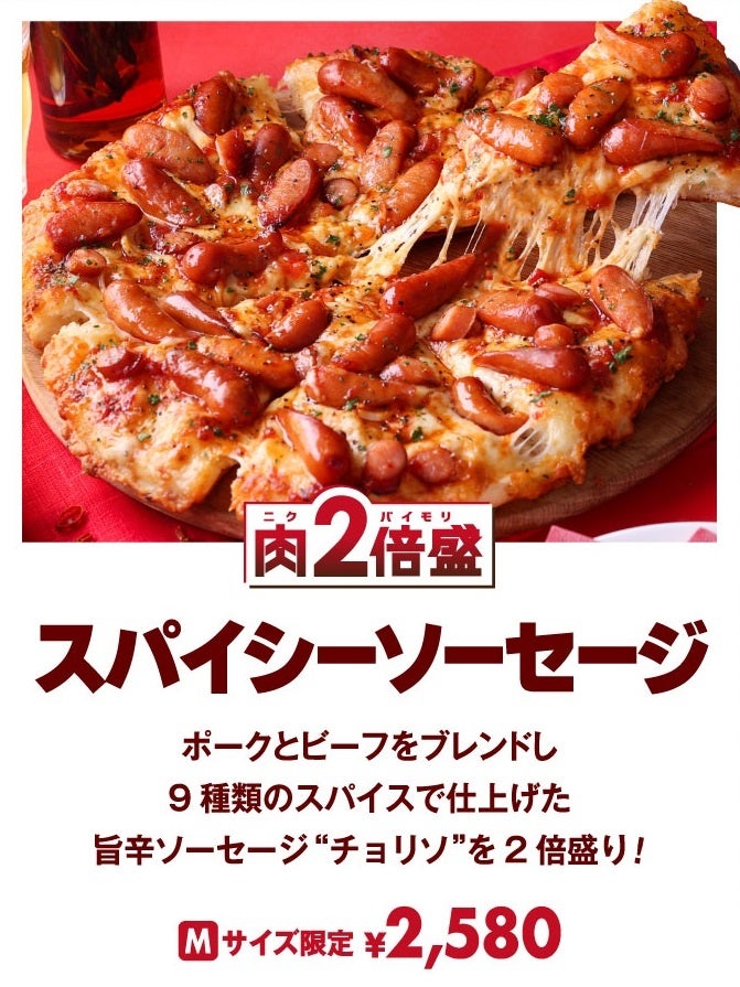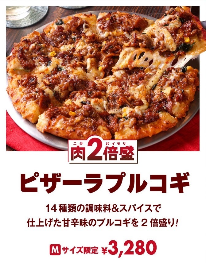 お肉トッピングが2倍盛りになった『2倍盛 テリヤキチキン』『2倍盛 ピザーラプルコギ』『2倍盛 スパイシーソーセージ』を、期間限定で販売いたします。