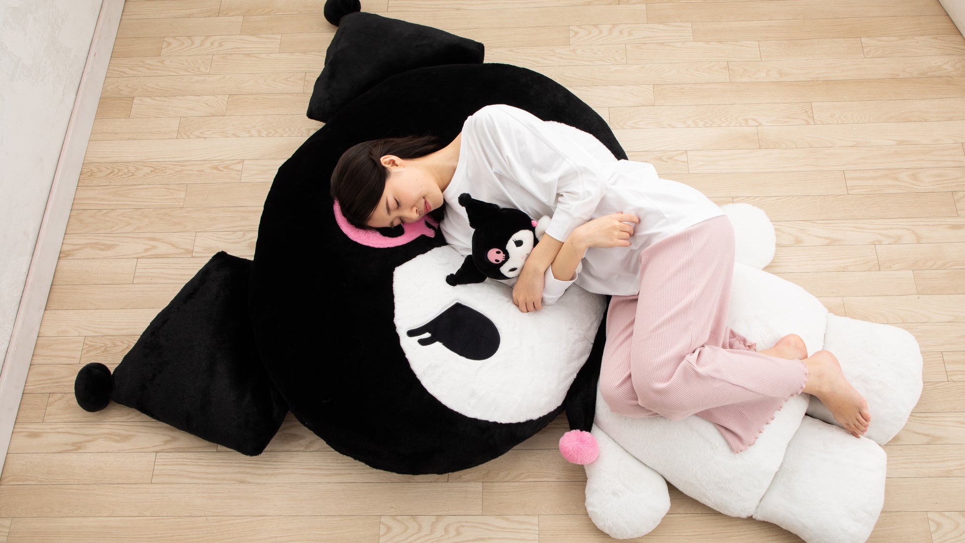 サンリオキャラクターの特大クッションが初登場 “推しキャラクター”と暮らせるアイテムプロジェクト第1弾は、クロミとKIRIMIちゃん.!クロミの上でお昼寝やKIRIMIちゃん.の“シャケ先”にハグも!