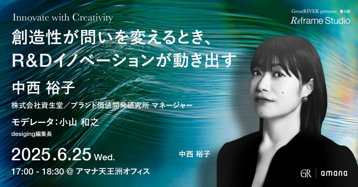 コミュニケーション変革をクリエイティブで実現する株式会社アマナ(本社:東京都品川区、代表取締役社長:金子剛章、以下「アマナ」)は、2025年6月25日(水)、「創造性が問いを変えるとき、R&Dイノベーションが動き出す Great RIVER presents〈Reframe Studio〉第5回」をテーマにセミナーを開催します。