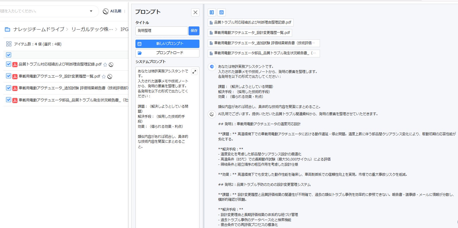 自動車メーカー向け車載部品を手がけるメーカー(企業名非公開)の品質保証部門が、以下の資料を AI IPGenius に投入して活用した。