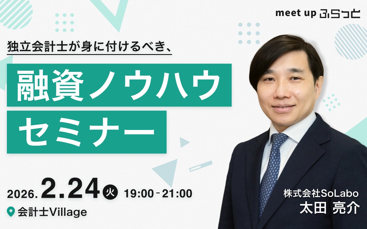 そこでSoLaboでは、独立を目指す会計士・税理士、および独立直後の先生方を対象に、実践的な融資ノウハウを提供するセミナーを開催いたします。
