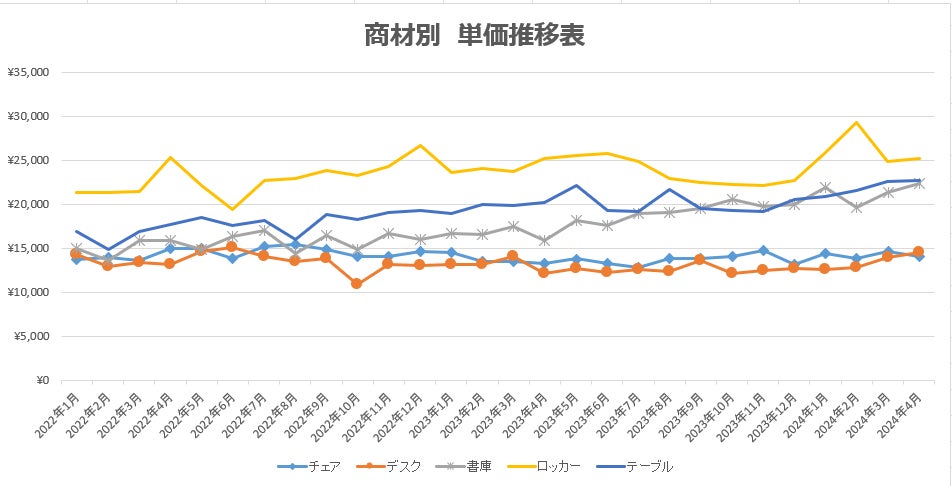 【独自調査㊳】当社取扱の中古オフィス家具の傾向や動向等を示す指数をとりまとめました。オフィスバスターズが、独自にまとめた'24年4月度の「中古オフィス家具指数」を発表します。