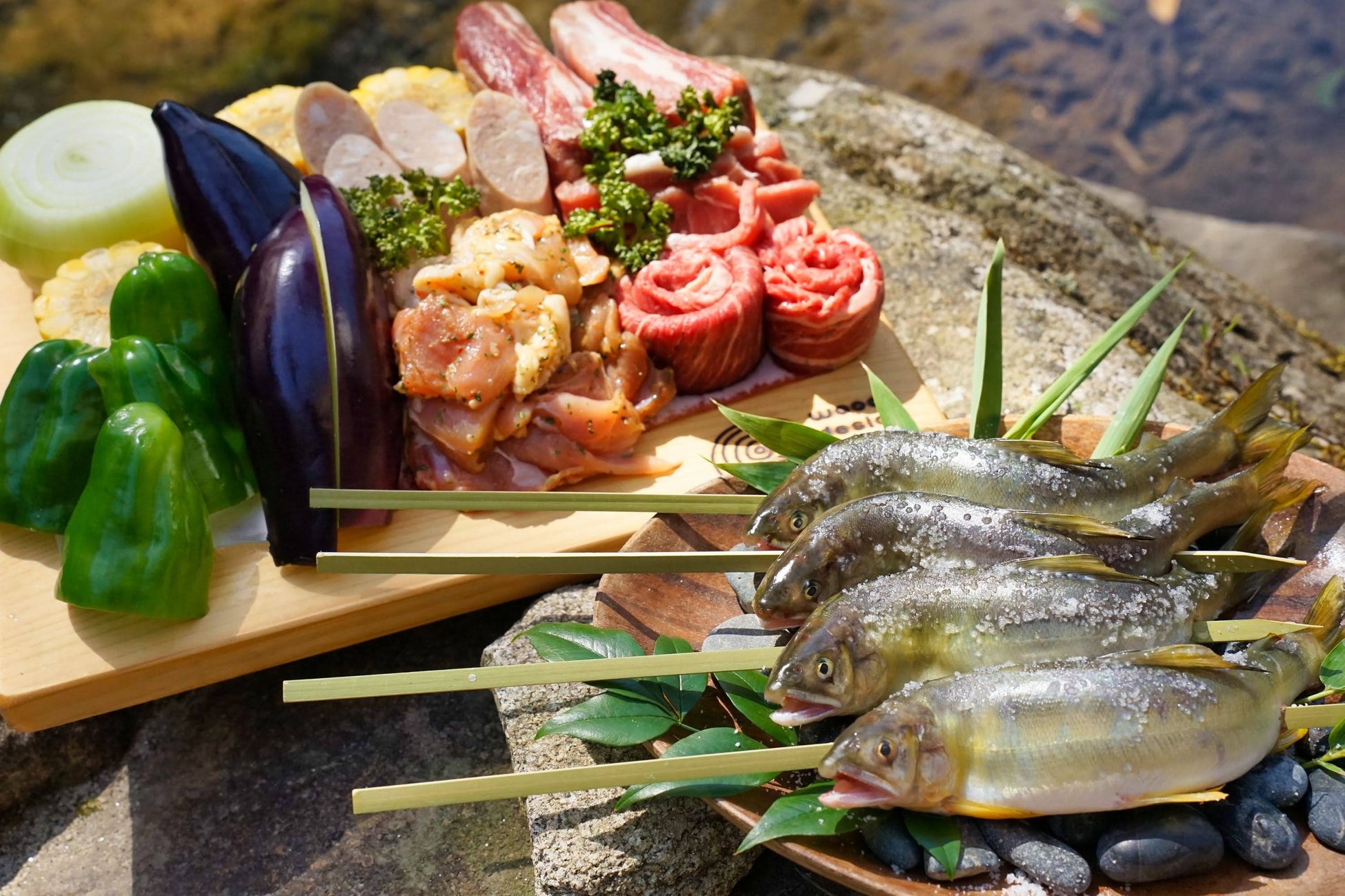 スタンダードBBQセット(5,000円/人)、ウッドデザインパークBBQセット(5,500円/人)、スペシャルBBQセット(6,700円/人)、ライトBBQセット(4,000円/人)、キッズBBQセット(2,200円/人)など多彩なメニューをご用意しています。