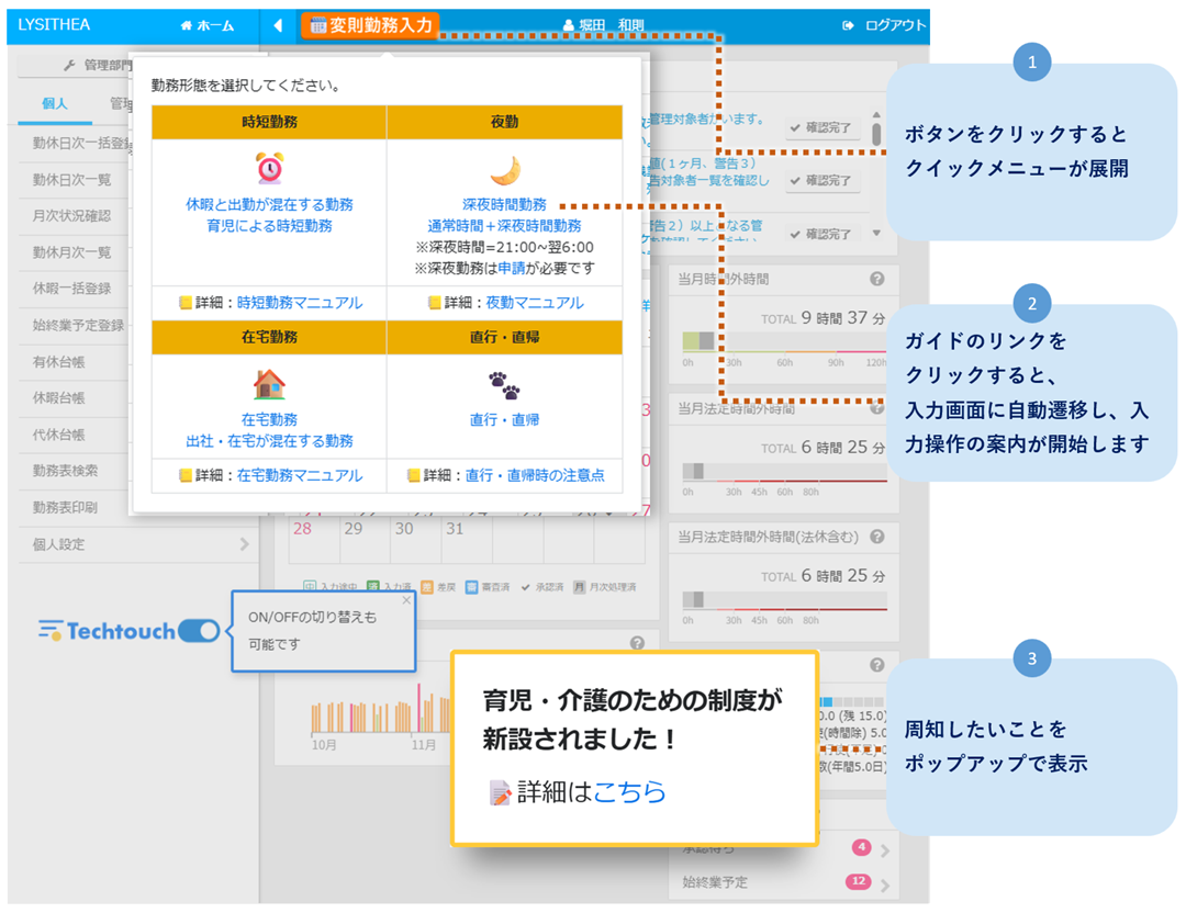 <テックタッチで設定したナビゲーションの例>
