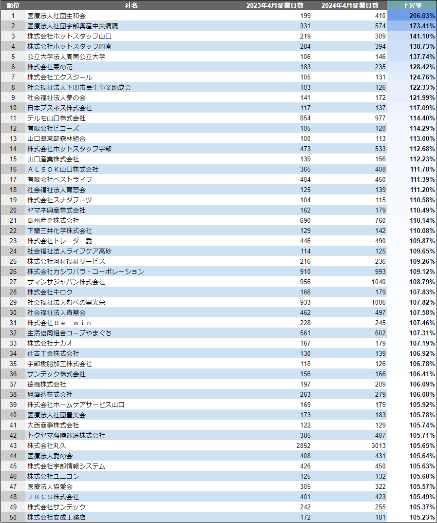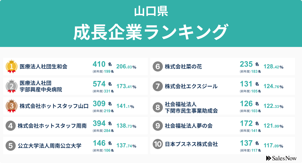 【山口県】成長企業ランキングTOP50!/SalesNow DBレポート