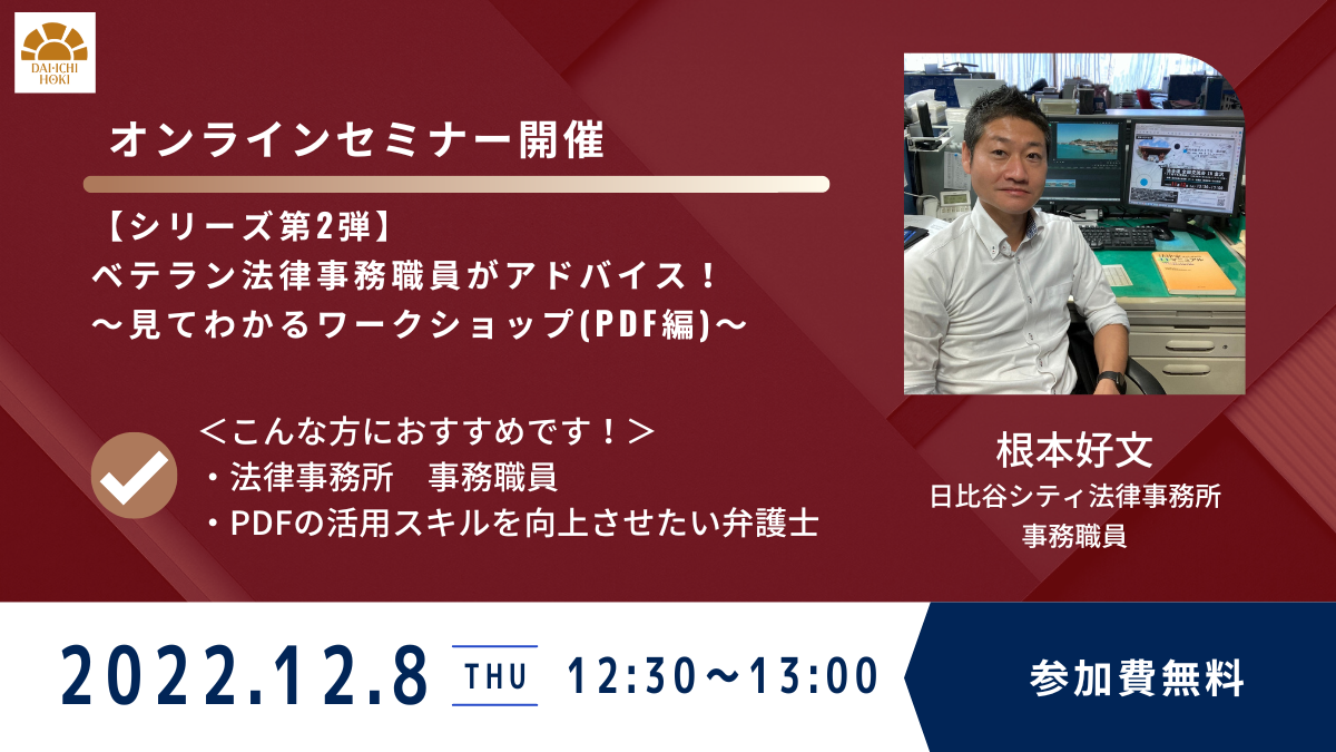 【12月8日開催|無料セミナー】ベテラン法律事務職員がアドバイス!~見てわかるワークショップ(PDF編)~オンラインセミナー開催!