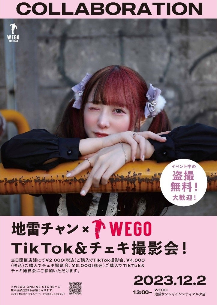 METEORA st.所属 歌い手オタクインフルエンサー地雷チャンWEGOコラボ!池袋サンシャインシティアルタ店にて12月2日(土)よりTikTok & チェキ撮影会!を実施当日店頭で盗撮無料大歓迎!