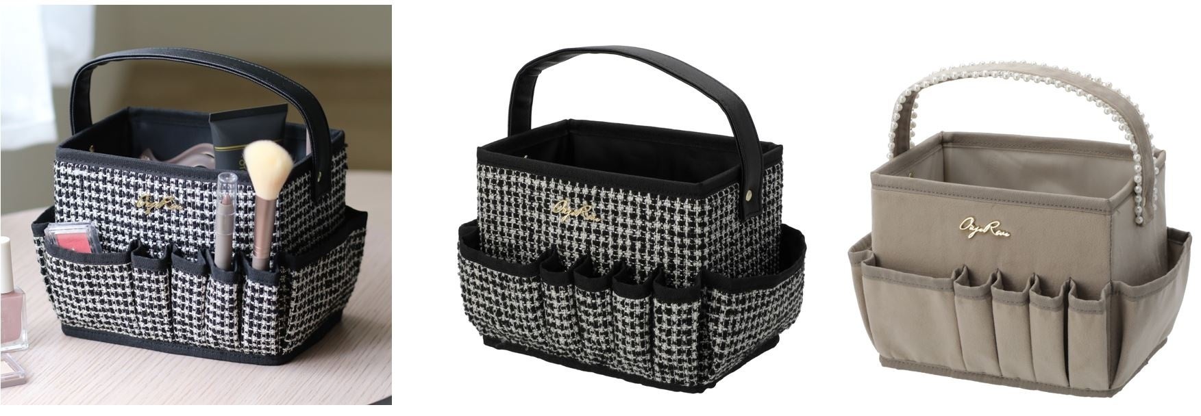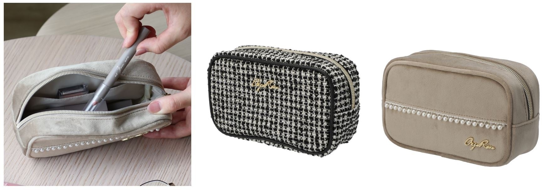 高級感あるパールをたっぷり使ったデザインのもの、シックな千鳥格子柄デザインのものなど、大人かわいい新商品となっています。特にコスメバッグは実用的な機能を追加してリニューアルしました。かわいさと機能性を持ち合わせた新シリーズをぜひご覧ください。