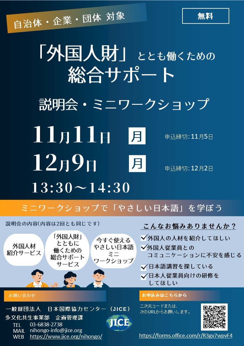 【自治体・企業・団体 対象】「外国人財」とともに働くための総合サポート説明会・ミニワークショップ
