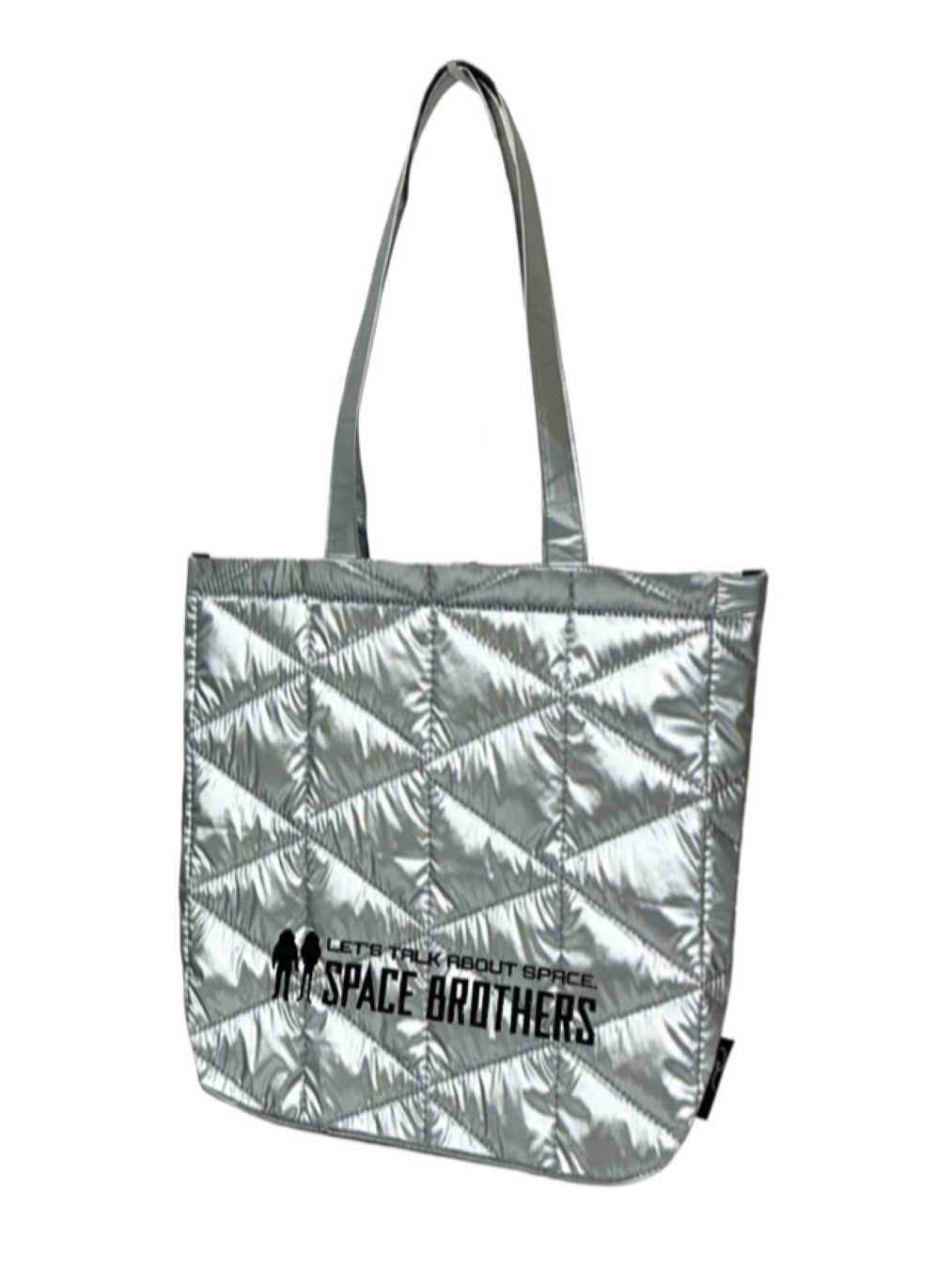 12月1日(月)から、TeNQの入館券に企画展オリジナルグッズ(シルバーキルトトートバッグ)がセットになったチケットを、セブンチケットにて数量限定で販売します。バッグには、宇宙飛行士選抜試験中の六太の台詞「宇宙の話をしよう(LET'S TALK ABOUT SPACE.)」の言葉と、六太&日々人のシルエットがあしらわれています。