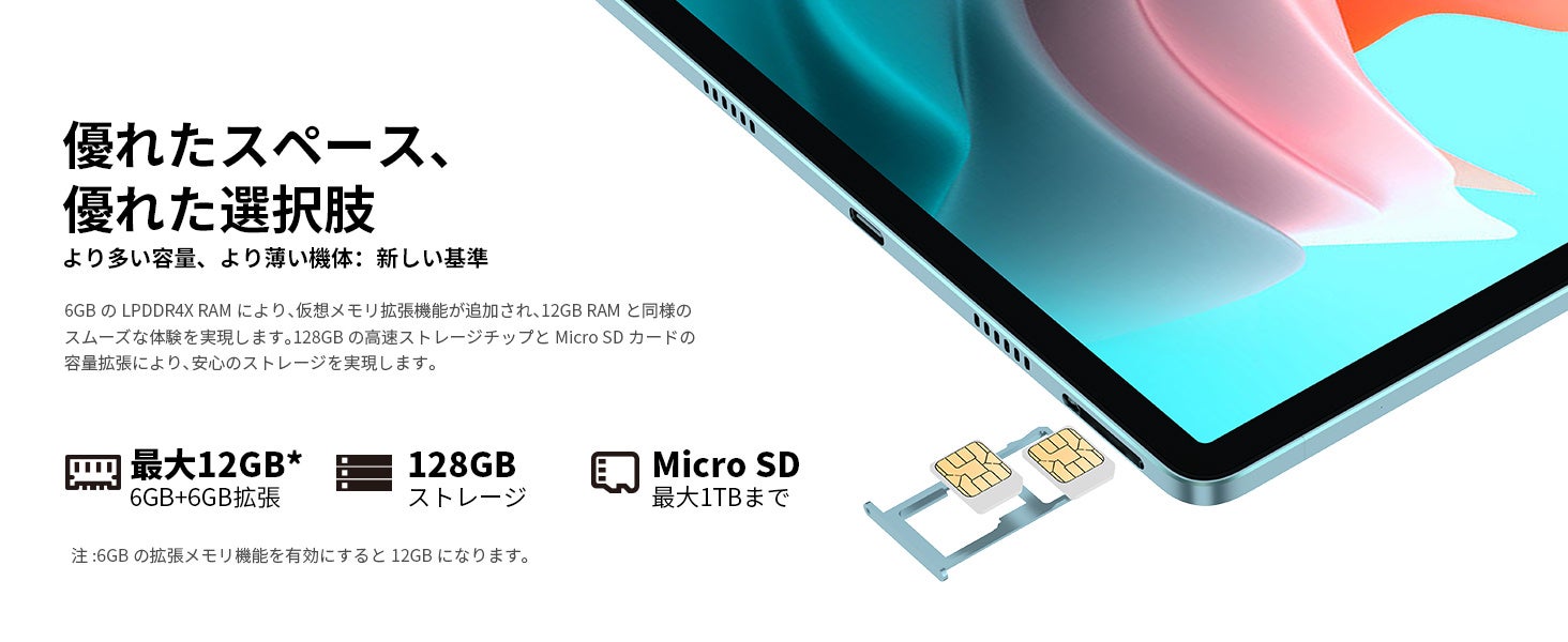 10インチ / Android 13 / 12GB+128GB+1TB TF拡張 / 4G LTE+5G WiFiモデル / Widevine L1対応 / GPS機能サポート / 3.5mmヘッドホンジャック
