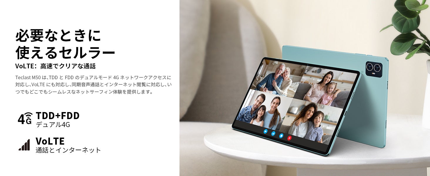 Teclast M50は、TDDとFDDのデュアルモード4Gネットワークアクセスに対応し、VoLTEにも対応し、同期音声通話とインターネット閲覧に対応し、いつでもどこでもシームレスなネットサーフィン体験を提供します。acデュアルバンドWi-Fiによるシームレスな接続性で、よりスムーズなオンライン閲覧体験を提供できます。省電力性に優れたBluetooth 5.0は、さまざまなレイテンシ低減のワイヤレス周辺機器に簡単に接続できます。