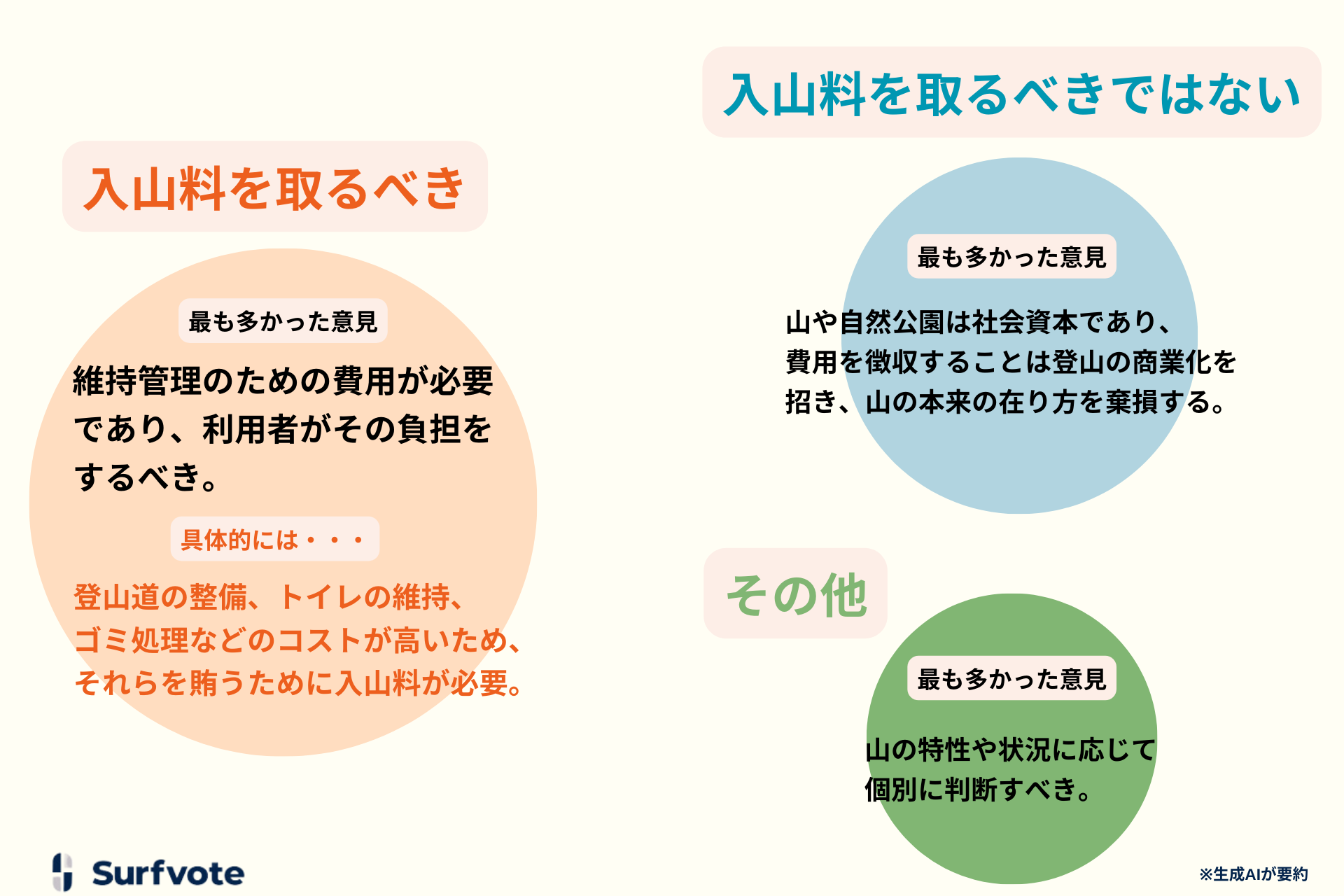 富士山などの山の維持には多額の費用がかかり、通行料の徴収はその財源確保に寄与するとされています。これにより、登山環境の整備や登山者の意識向上が期待されます。しかし、地域経済への影響や費用管理の問題も懸念されています。登山者に対して入山料を取るべきか?Surfvoteで意見をひろく集めました。https://surfvote.com/issues/ekeyygf1z4ws