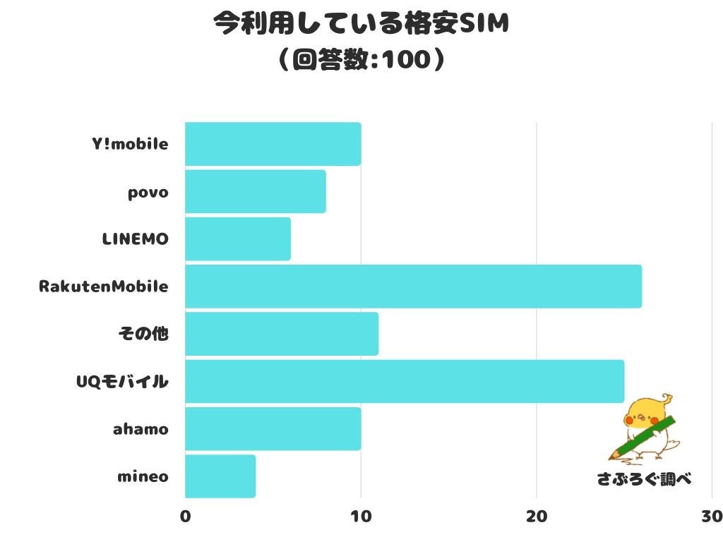今利用している格安SIMをアンケートにて調査したところ、1位は「RakutenMobile」 でした。