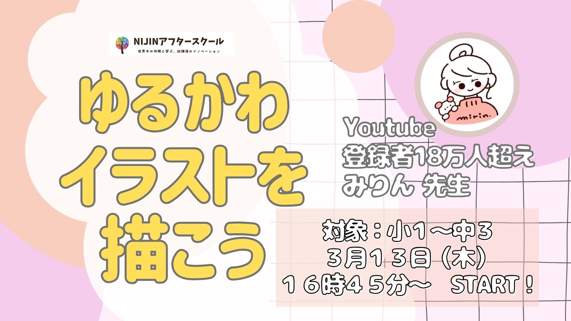 株式会社NIJIN(本社:東京都江東区、代表取締役:星野達郎)が運営する小中学生を対象としたメタバース学童『NIJINアフタースクール』では、人気イラストレーターによる【ゆるかわイラスト講座】を3月13日(木)から開催いたします。