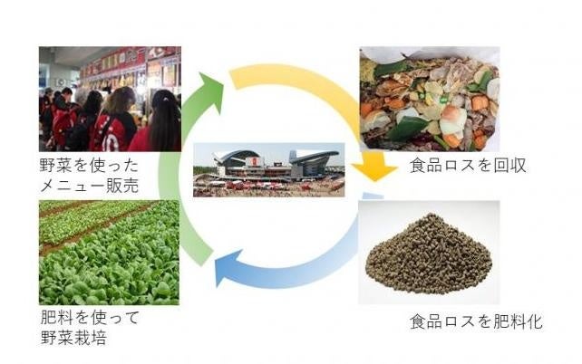 スタジアムから出る食品ロスの分別回収、選手を起用した野菜のメニュー考案 や販売