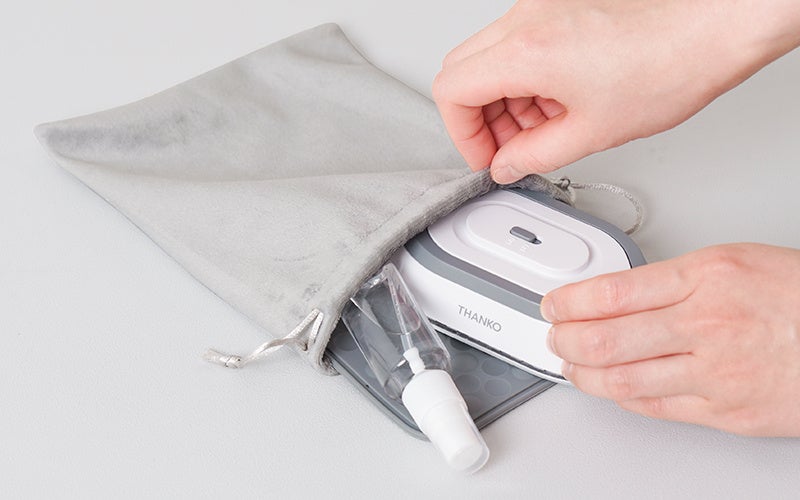 付属のポーチに一式収納でき、旅行や出張時の衣類ケアはもちろん、