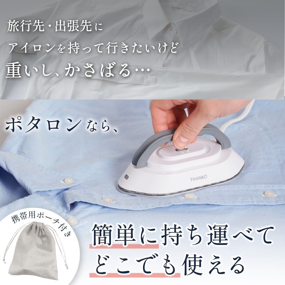 手のひらサイズで重さわずか340g。変圧器不要で世界中どこでも使える『240V対応持ち運びアイロン「ポタロン」』を発売