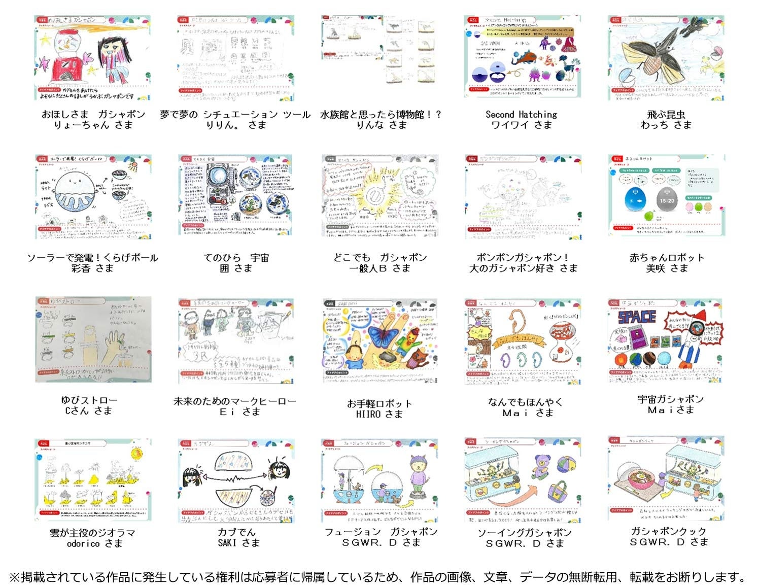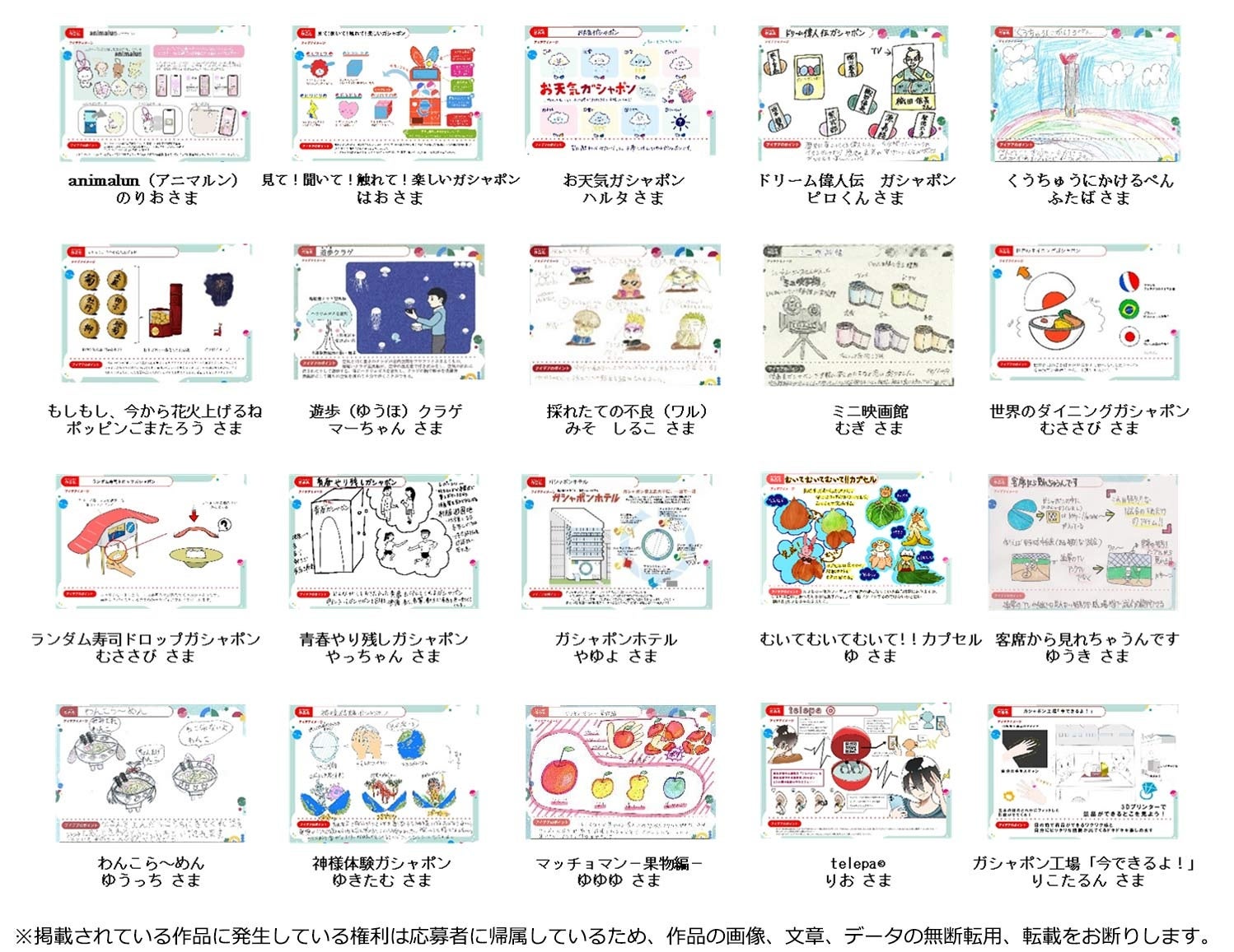 ▶「ガシャポン🄬ドリームコンテスト」応募内容詳細、中間審査通過作品発表ページ: