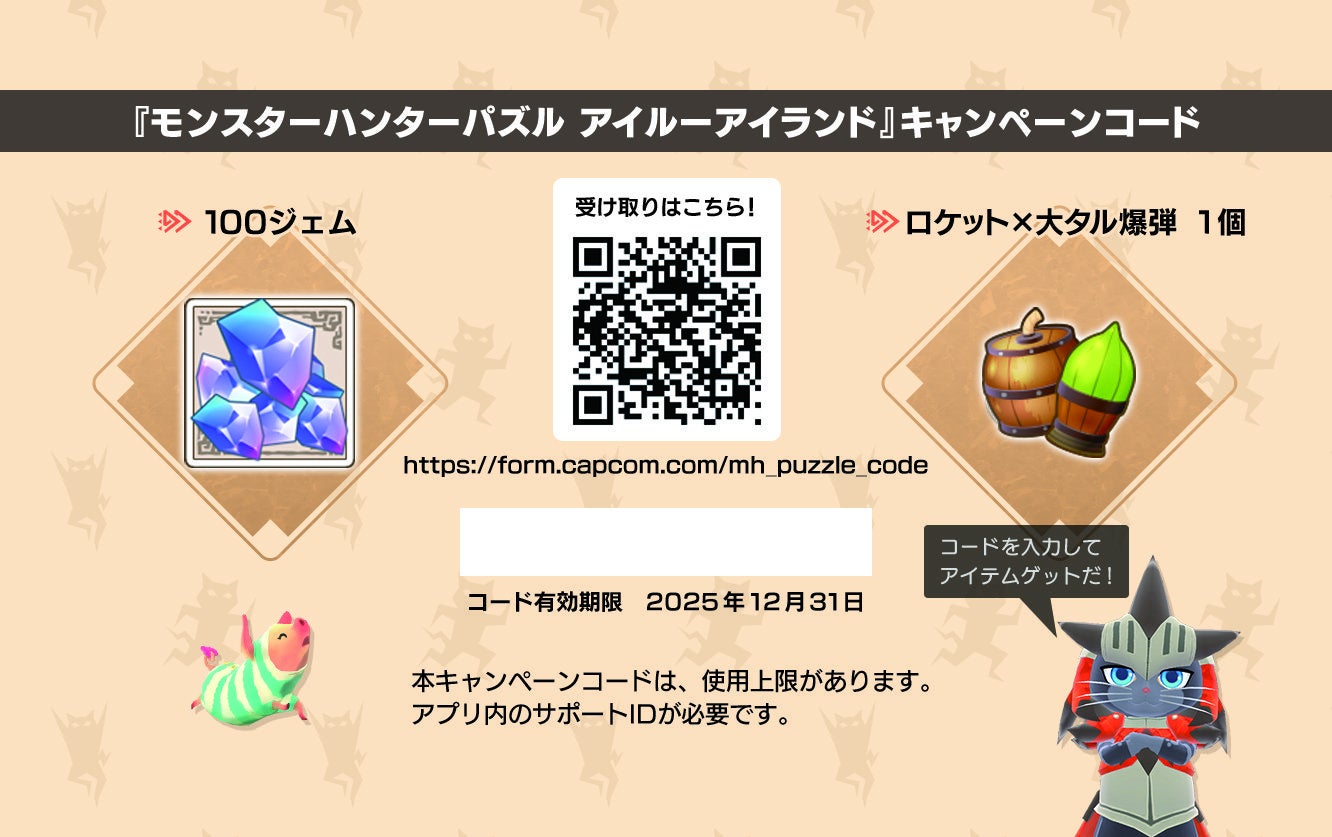 ■『モンスターハンター・ザ・フィールド』×「モンスターハンターパズル アイルーアイランド」タイアップキャンペーン 概要