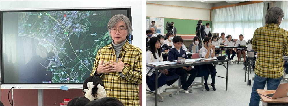 高知大学の伊谷教授による講義では、まず、夜須小学校の地域性を踏まえた「夜須の海の特徴」が語られました 。夜須の海は、波打ち際からすぐの沖合に60種類以上ものサンゴが生息するという全国でも珍しい特徴がある一方 、近年、オニヒトデによる食害や海水温の極端な変化が原因でサンゴが白くなる白化現象が起きている現状が伝えられました。