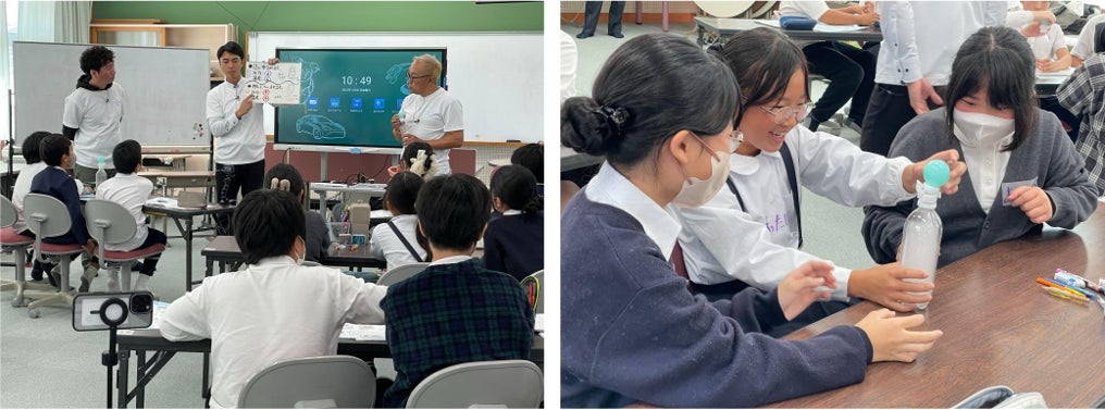 座学の後は、ペットボトルとアルコールを使った「雲を作る実験」も行われ、子どもたちは科学的な視点からも気象と海の関係を体感しました。